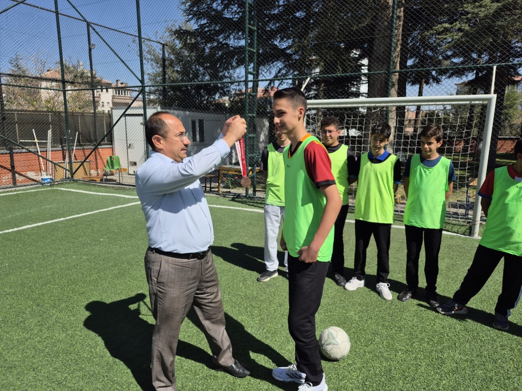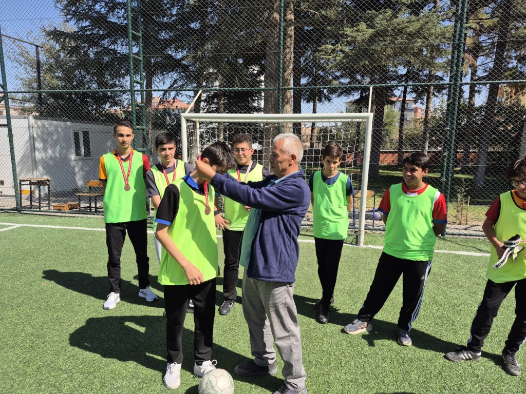 Okulumuz Spor kulübünün düzenlemiş olduğu sınıflar arası Futbol turnuvasında 11/B ve 9/A sınıfı finale kaldı.Finale yakışır, çok güzel ve heyecanlı anların yaşandığı maçın normal süresi 6 - 6 berabere bitti.Penaltı atışları sonunda 5 - 3 lük skorla 9/A sınıfı şampiyonluğa adını yazdırdı.Maç bitiminde o mutlu anı yaşayan öğrencilerimizin ödüllerini Okul idaresi ve öğretmenleri takdim etti..9/A sınıfımızı tebrik ediyor,başarılarının devamını diliyoruz.